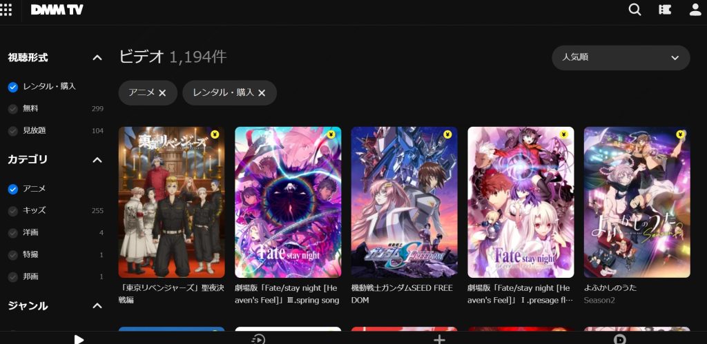 - DMM TV:アニメ・映画・ドラマのレンタルに利用可能