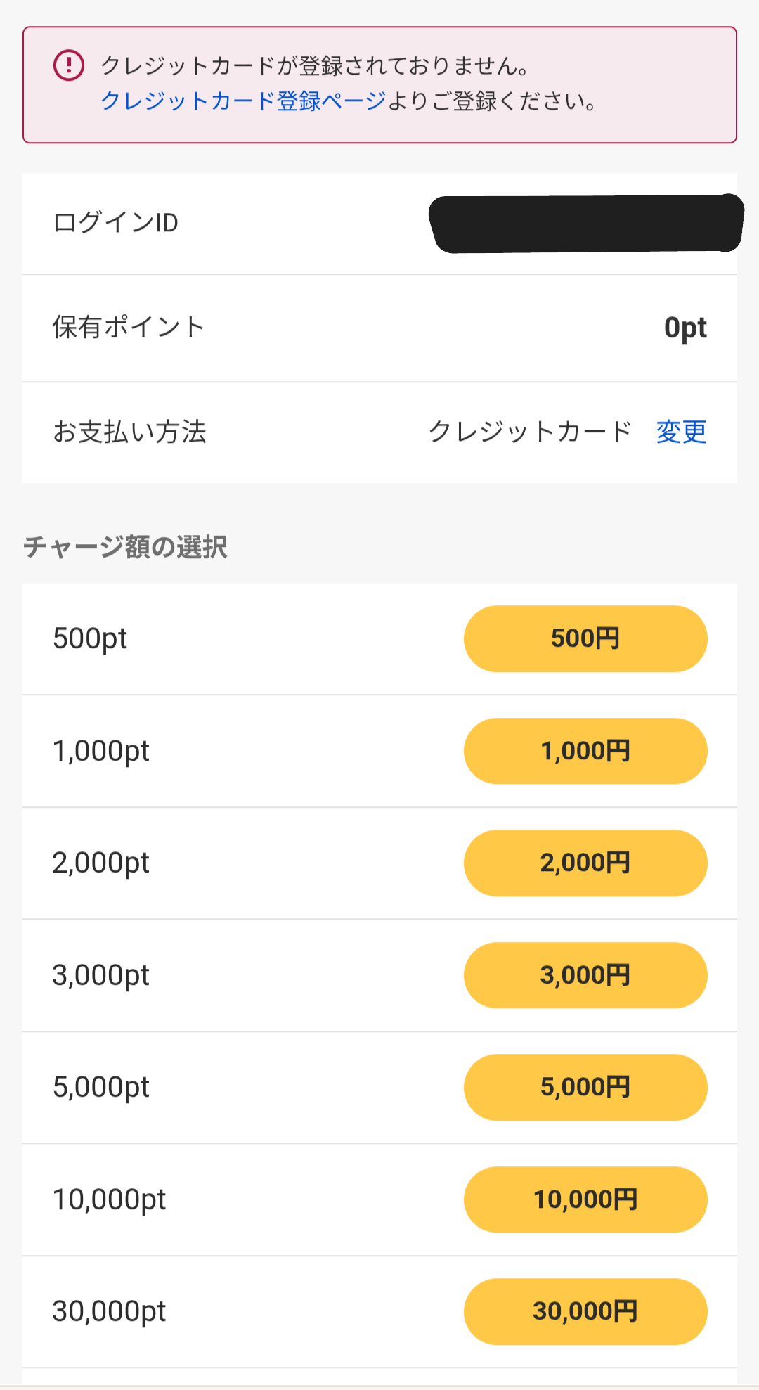 ポイント購入時にPayPayなどを選べば、クレジットカード情報を入力せずに支払いを完了できます。