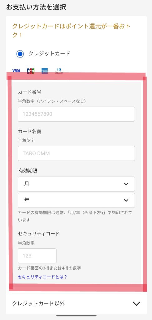 バンドルカードを使う場合も、クレジットカード欄に直接入力するより、DMMポイントを購入してから登録する方法のほうが安全です。