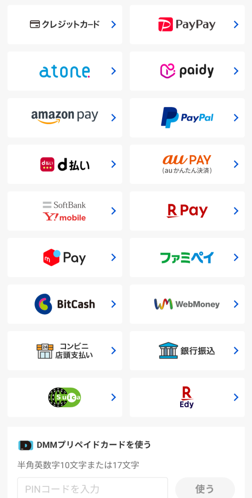 | PayPayなどからチャージしてDMMポイント払い | ○可能 | ★★☆ | トラブルは少ないが、無料トライアルは非対応 |