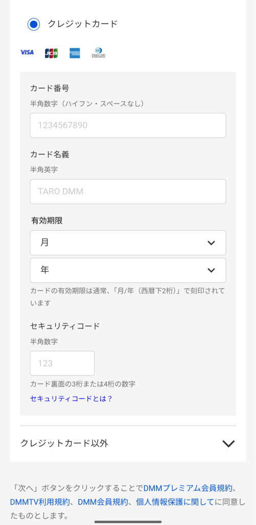 STEP3:支払い方法で「クレジットカード以外」を選択