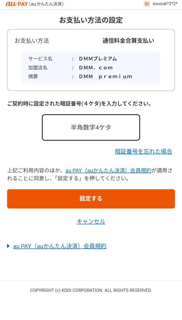 キャリアのIDとスマホの暗証番号を入力するだけで、あっという間に決済が完了します。