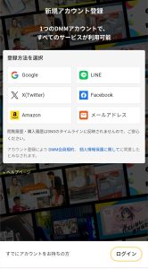 DMMアカウントを作成する際、メールアドレスでの登録と、SNSアカウント連携の2種類があります。